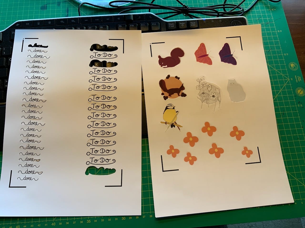 Aber zunächst nutze ich alle Möglichkeiten, die mir der Joy xtra bietet, aus: Karten basteln, Etiketten beschriften, Vinylaufkleber, usw. Leider kann ich die Vinylaufkleber nicht bedrucken, da wir einen Laserdrucker haben. Aber es gibt auch noch anderes Stickerpapier. Momentan bastel ich sowieso eher mit buntem Tonpapier. Wer hätte gedacht, dass ich mal basteln würde?