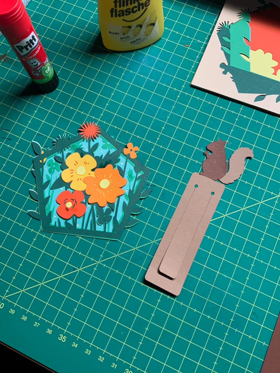 Welche Projekte möchte ich noch realisieren? Am liebsten frühlingshafte Girlanden oder Fensterbilder. Vielleicht Blumen aus Vinyl, die ich dann auf Blumentöpfe klebe. Lesezeichen natürlich auch und Karten. Shadow Boxen, von denen ich mir jede Menge schon angesehen habe. Sticker natürlich auch und vielleicht auch ein paar Bügelbilder. Infusible Ink klingt auch interessant, aber das ist nicht für Baumwolle geeignet. Vielmehr muss der Stoff Polyester enthalten und das kaufe ich nicht. Infusible Ink kann man aber auch auf Keramik auftragen, z. B. für Untersetzer. Für Bügelbilder gibt es Iron-On-Folien, die entweder mit einer Bügeleisen oder einer der Cricut Heatpress aufgebügelt werden können. In meinem Bundle, was ich mit der Maschine gekauft habe, ist auch Iron-On-Folie dabei. Ausprobiert habe ich sie aber noch nicht.