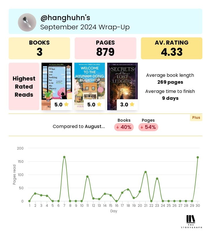 Für alle, die Grafiken mögen, hab ich hier noch mein September-Wrap-Up von The StoryGraph (empfehlenswerte Alternative zu Goodreads).