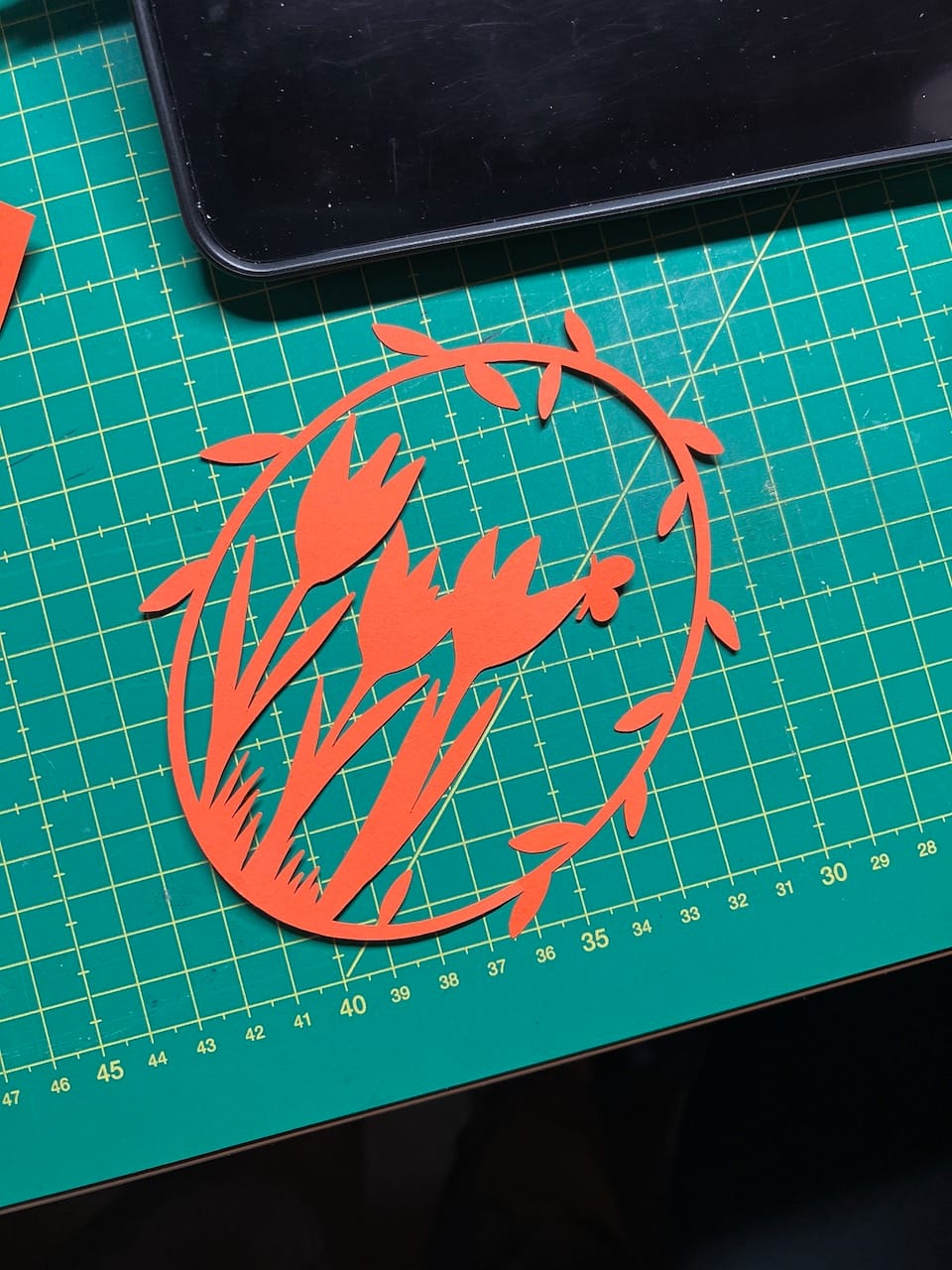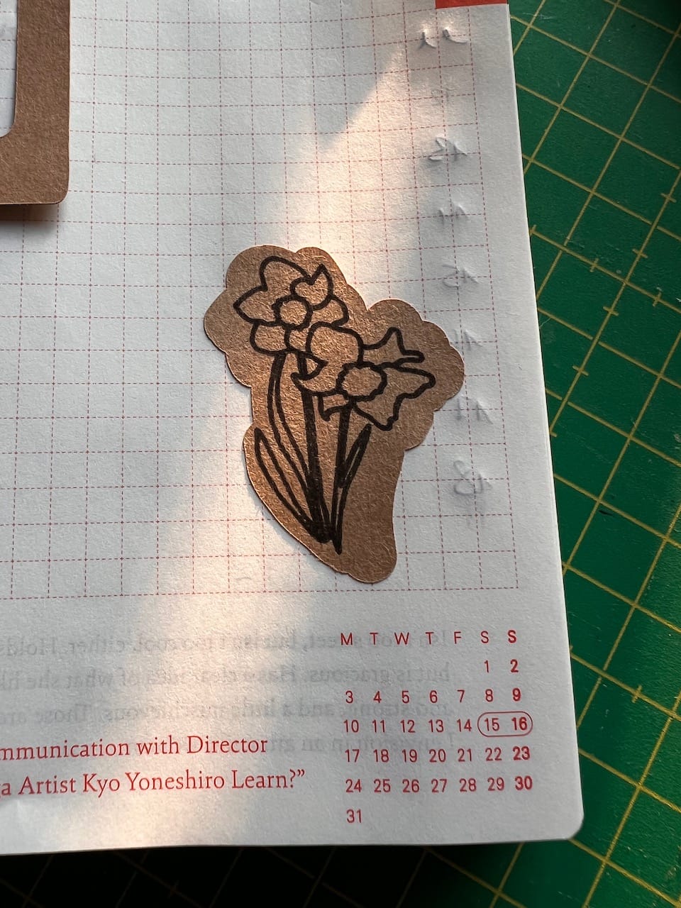 Skizze in Procreate angefertigt, mit Affinity Design in SVG umgewandelt und schließlich im Design Space hochgeladen. Mit einem schwarzen Cricut-Stift hat der Cricut Joy xtra das Motiv auf das Smart Label Papier übertragen und danach ausgeschnitten.