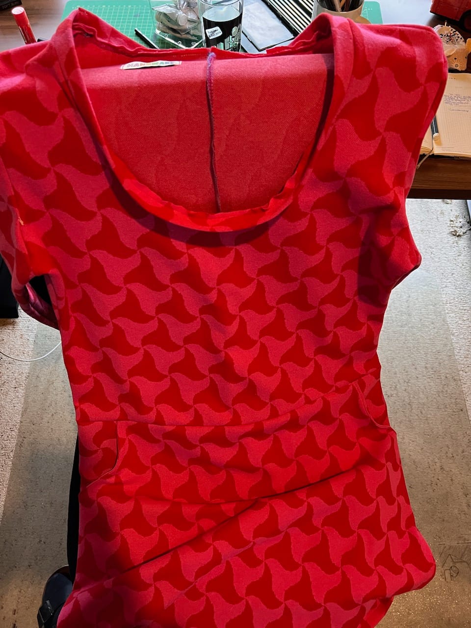 Immerhin hab ich etwas fertiggenäht: Nämlich das Kleid FRAU FANNIE von Studio Schnittreif. Ich hatte das schon mal genäht, in Dunkelblau. Aber irgendwie passt mir das nicht mehr oder es wurde von kleinen Tierchen enger gemacht. Wer weiß.