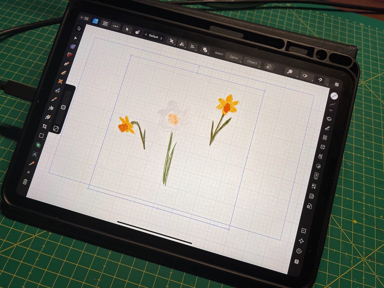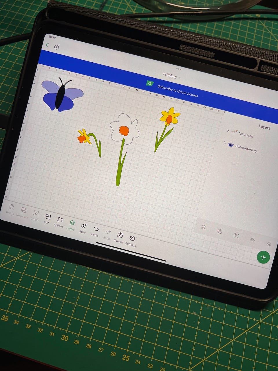 Nach dem Abendessen (nicht fotografiert) habe ich eine Datei für den Cricut Design Space erstellt. Erst das Motiv in Procreate skizzieren, dann zu Affinity Designer wechseln, einen Vector draus basteln und schwupps, im Design Space öffnen. Mal sehen, ob ich es heute dann mal schneide. Ich brauche dickeres buntes Papier.