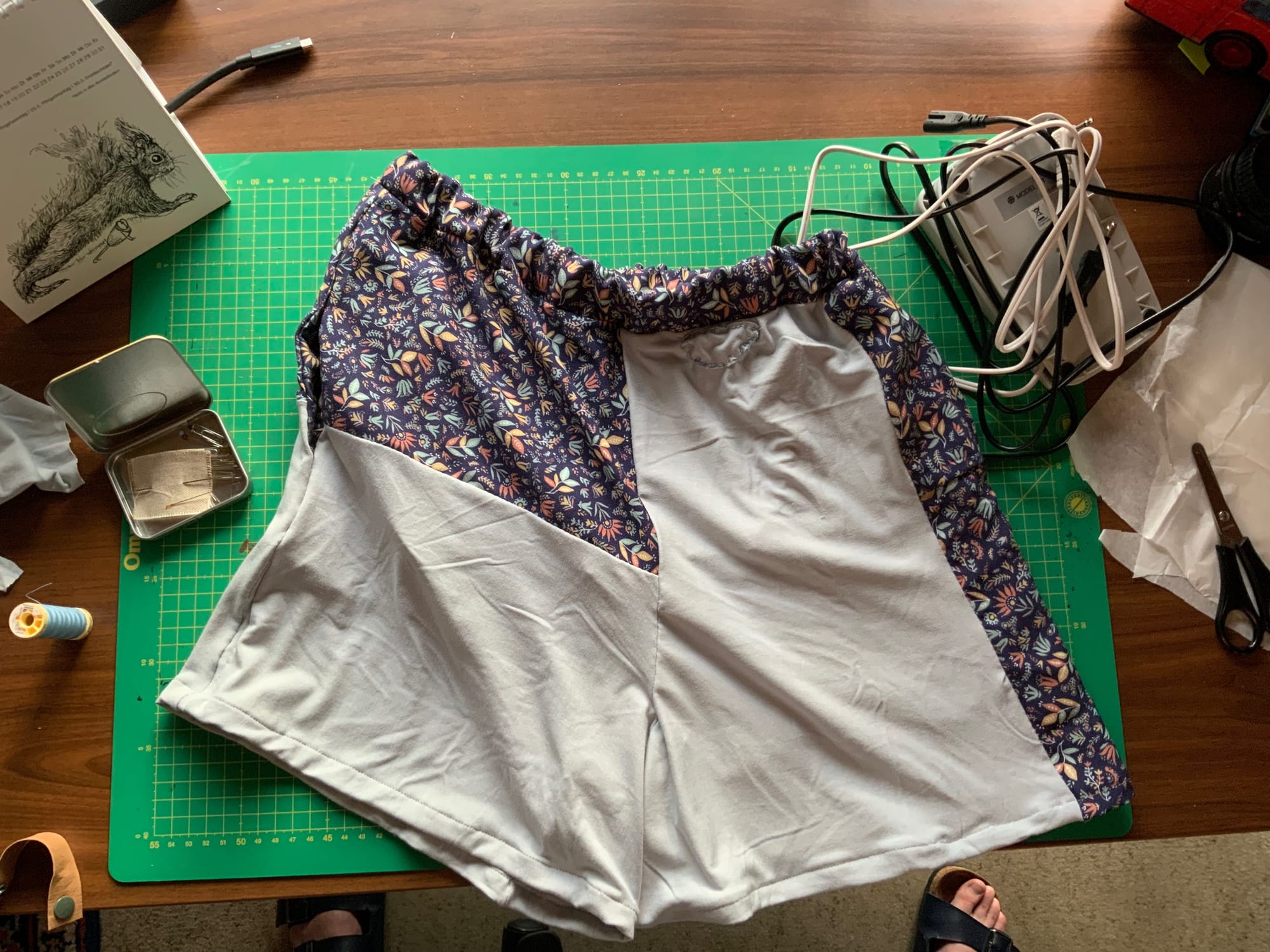 In letzter Zeit sind zwei Schlafanzughosen entstanden. Eine kurze aus Stoffresten. Das Schnittmsuter stammt aus der Zeitschrift "Meine Nähmode", Ausgabe 02/2024. Ich hatte noch Viskose-Stoffreste, die ich irgendwie noch verarbeiten wollte und da kam das Schnittmuster für die Shorts wie gerufen. Ich nähe sehr ungerne Viskose, deshalb bin ich froh, die größten Reste jetzt verwertet zu haben. Den Rest kann ich für Füllungen verwenden.