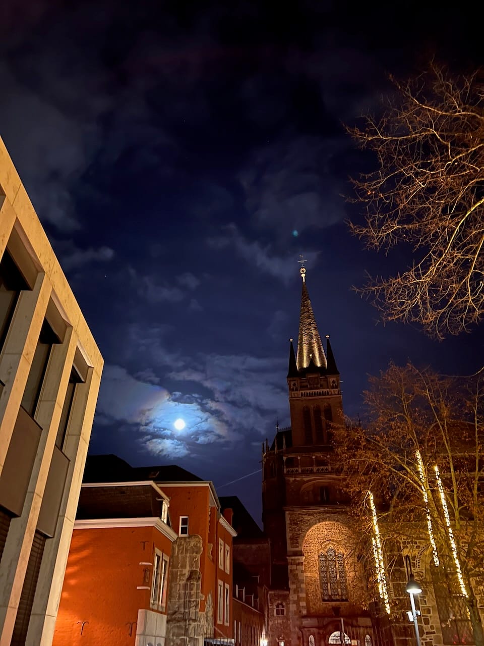Auf dem Weg zurück zu meinem Fahrrad hab ich zum Glück noch einen Blick zurück auf den Dom mit Mond im Hintergrund erwischt und schnell fotografiert.