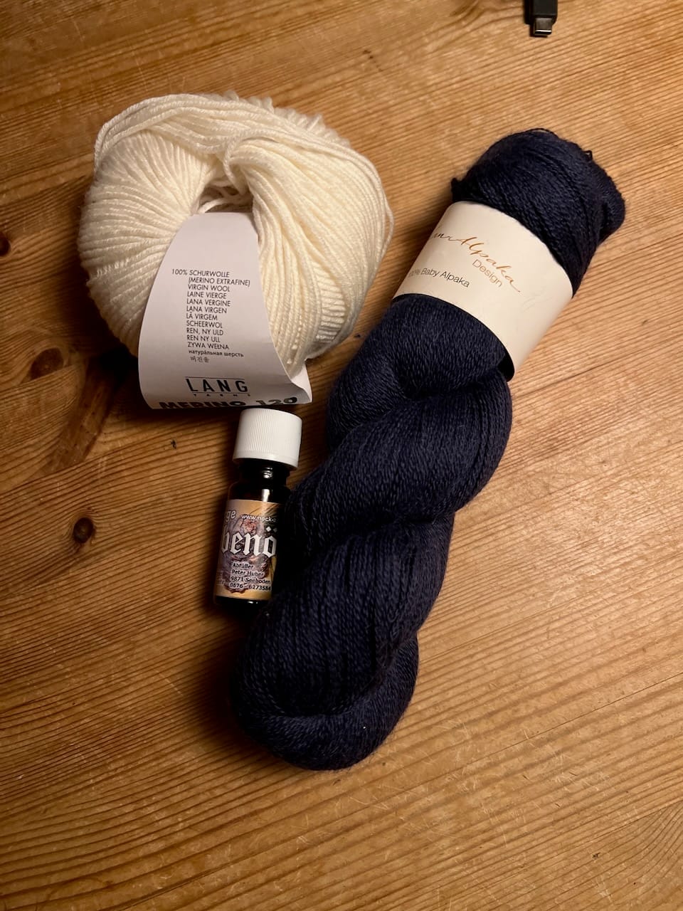 Bevor ich meine Kolleg*innen auf dem Weihnachtsmarkt getroffen habe, bin ich aber noch zum Wollgeschäft gegangen. Dort habe ich mir ein Knäuel Merino 120 von Lang Yarns* gekauft. Ich brauchte nämlich eine Alternative für das Stirnband aus dem Adventskalender von Maschenfein. Geplant war, Wolle zu nehmen, die ich noch hatte, nämlich ein türkis/blau/grün-Ton und ein Rest hellblau. Das türkis/blau/grüne Garn war allerdings zerfressen. Rot hab ich mir letztens neu gekauft, aber das Hellblau passt dazu nicht. Also musste etwas anderes als Kontrastfarbe her und ich habe mich für offwhite entschieden.