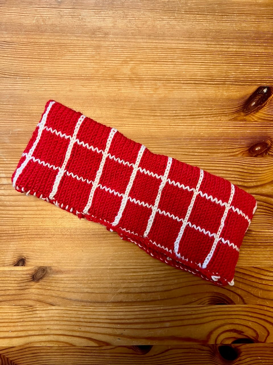 Ich habe mein Stirnband aus dem Maschenfein-Adventskalender fertiggestrickt Das war eigentlich einfach. Aber das Häkeln der senkrechten Streifen war etwas tricky, weil in der Anleitung nicht erklärt war, was ich nach dem ersten machen soll. Faden abschneiden und weiter? Oder gibt es da einen anderen Trick? Ich hab mich dazu entschieden, nach jedem Streifen den Faden abzuschneiden und dann neu anzusetzen. Der nächste tricky Part war der Maschenstich, um die beiden Enden nach dem Zusammenklappen zusammenzustricken. Weil ich das viel zu umständlich war, habe ich zur Häkelnadel gegriffen. Gestern habe ich das Stirnband kurz getragen, aber ein paar Maschen haben sich gelöst. Das war aber schnell repariert.